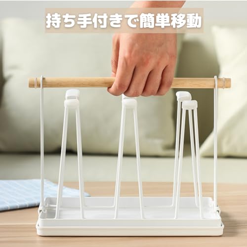 【送料無料】Riblind グラススタンド コップホルダー 6個掛け 水切りラック 木製ハンドル付 北欧風 シリコンカバー付 おしゃれ キッチン収納 スリム ディッシュラック ホワイト |