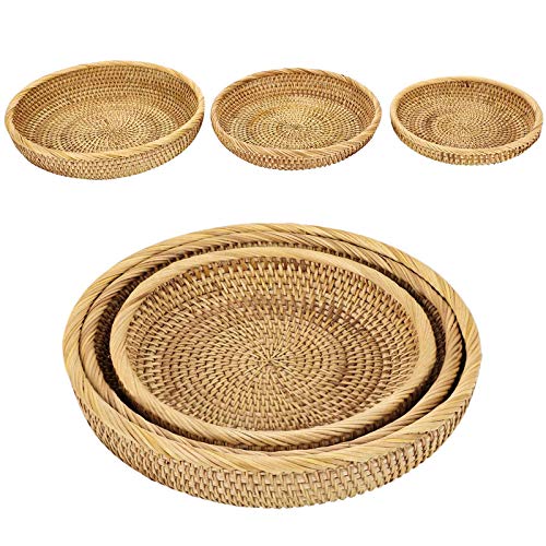 【送料無料】Sumnacon 藤編みトレー かご バスケット 小物入れ 天然籐 ハンドメイド ナチュラル おしゃれ 藤トレー お盆 アクセサリートレイ 手 工芸品 家庭用 ホテル用 小物整理 小物収納 雑貨収納 3個セット |