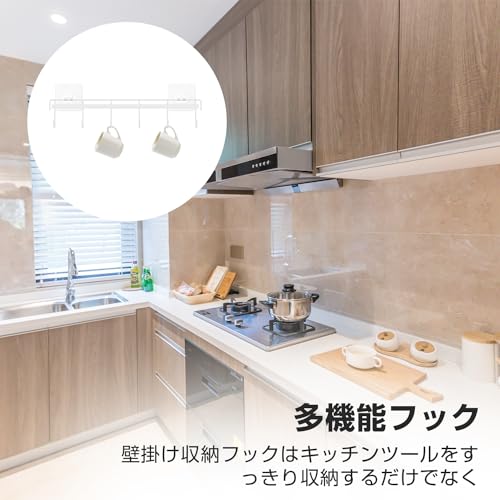 【送料無料】EsiFare キッチンツールフック キッチン フック 強力粘着 傷つけない 穴あけ不要 貼るだけ ツールフック 壁掛け 壁収納 吊り戸棚収納 6連フック 吊り戸下 引っ掛け キッチン小物 整理 収納 キッチンフック 台所 防水 防錆 取り付け簡単 ウォールフック |