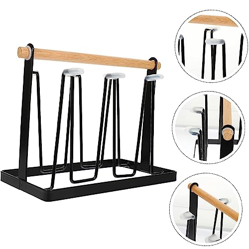 【送料無料】YUNXIASW グラススタンド コップホルダー 6個掛け ガラスホルダー 木製ハンドル付 鉄工芸 北欧風 おしゃれでスリム キッチン収納 ガラス乾燥 水切りラック シリコン滑り止め付 省スペース (ブラック) |