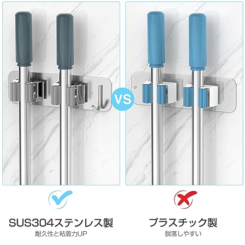 【送料無料】HOMEASY モップホルダー 2位1鈎 2個セット【穴開け不要&フック付き】ステンレス製 防水 ほうきホルダー 耐荷重10KG 高耐久性 強粘着力 モップクリップ 壁掛け 収納 省スペース モップハンガー バスルーム/トイレ/キッチン/玄関用 |