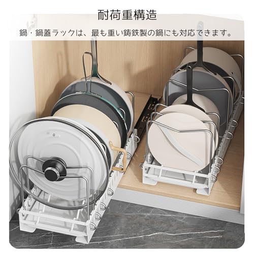 【送料無料】Gevvnss フライパンラック キッチン収納ラック パーツ付き 鍋スタンド フライパン 鍋 蓋置き スノコセット付き食器乾燥ラック キッチン リビングルーム用の頑丈なスライドアウトパントリー引き出し ホワイト |
