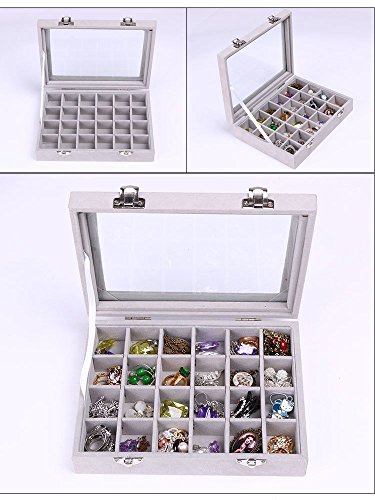 【送料無料】SPIEA 24区画 アクセサリーボックス ベルベット調 ジュエリーケース 耳飾り ピアス 指輪 ディスプレイ収納ケース (グレイ) |