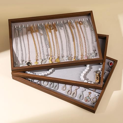 【送料無料】DIFEIUKI ジュエリーケース オシャレ 木目調 ジュエリー収納トレイ ベルベット調 指輪収納ケース コレクション 展示 小物入れ 大容量 アクセサリーケース 35*24*2.5cm |