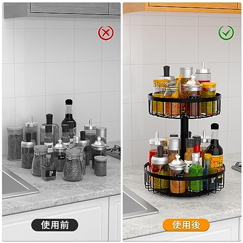 【送料無料】RCHYFEED 調味料ラック キッチン スパイスラック 調味料入れ キッチン 調味料 収納 2段 360度回転式 卓上収納 台所収納 |