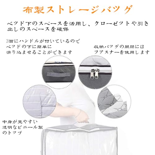 【送料無料】収納ボックス 収納ケース 布製アンダーベッドストレージバッグ 大容量 衣類収納 折りたたみ 取っ手付き ふた付き おしゃれ 衣装ケース 透明窓付き ファスナー (グレー, 幅100×奥行50×高さ15cm 1個) |