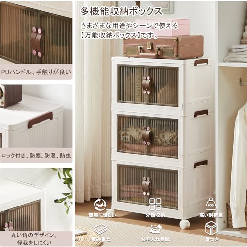 【送料無料】VECELO 収納ボックス 収納ケース キャスター付き 半透明扉付き 折りたたみボックス 大容量 |