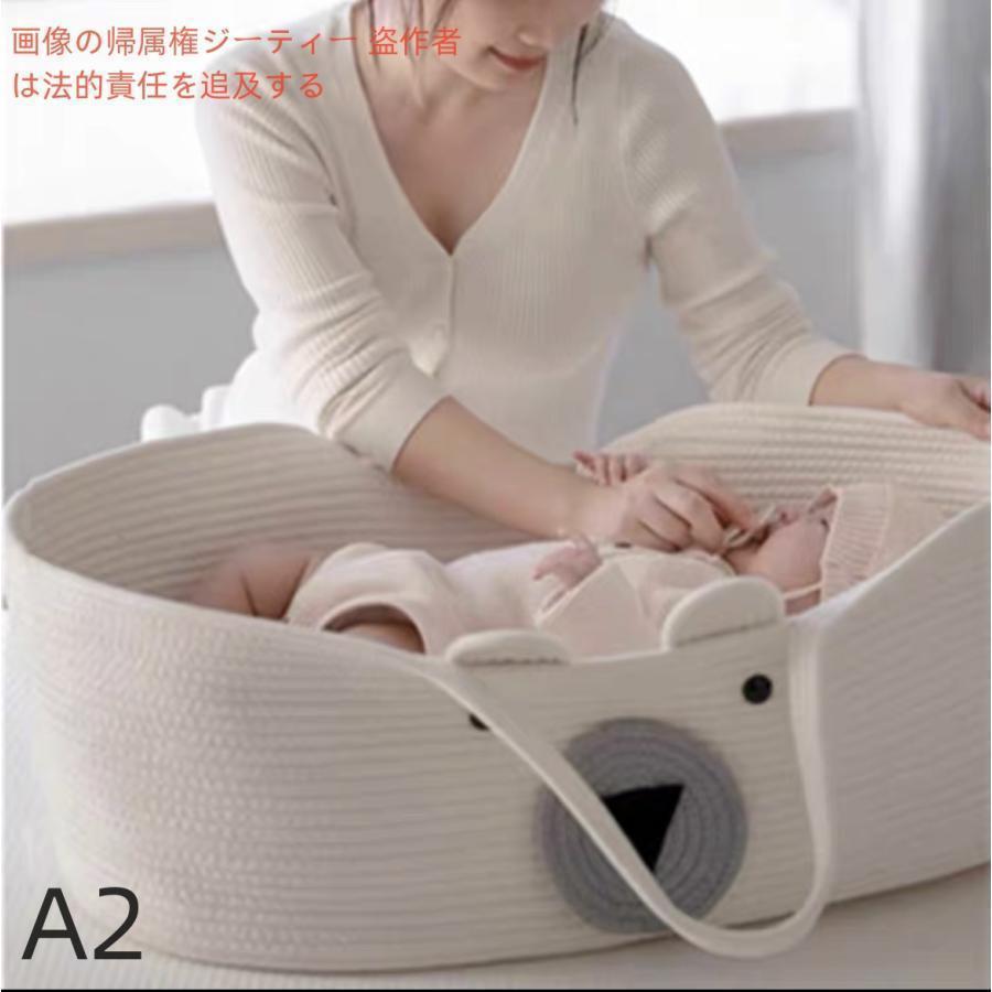 ラ 持ち運び バスケット ベビーキャリー お昼寝 赤ちゃん ベビー ロープ編み 籠 クーハン かご 寝返り防止 添い寝 ベビーベッド |