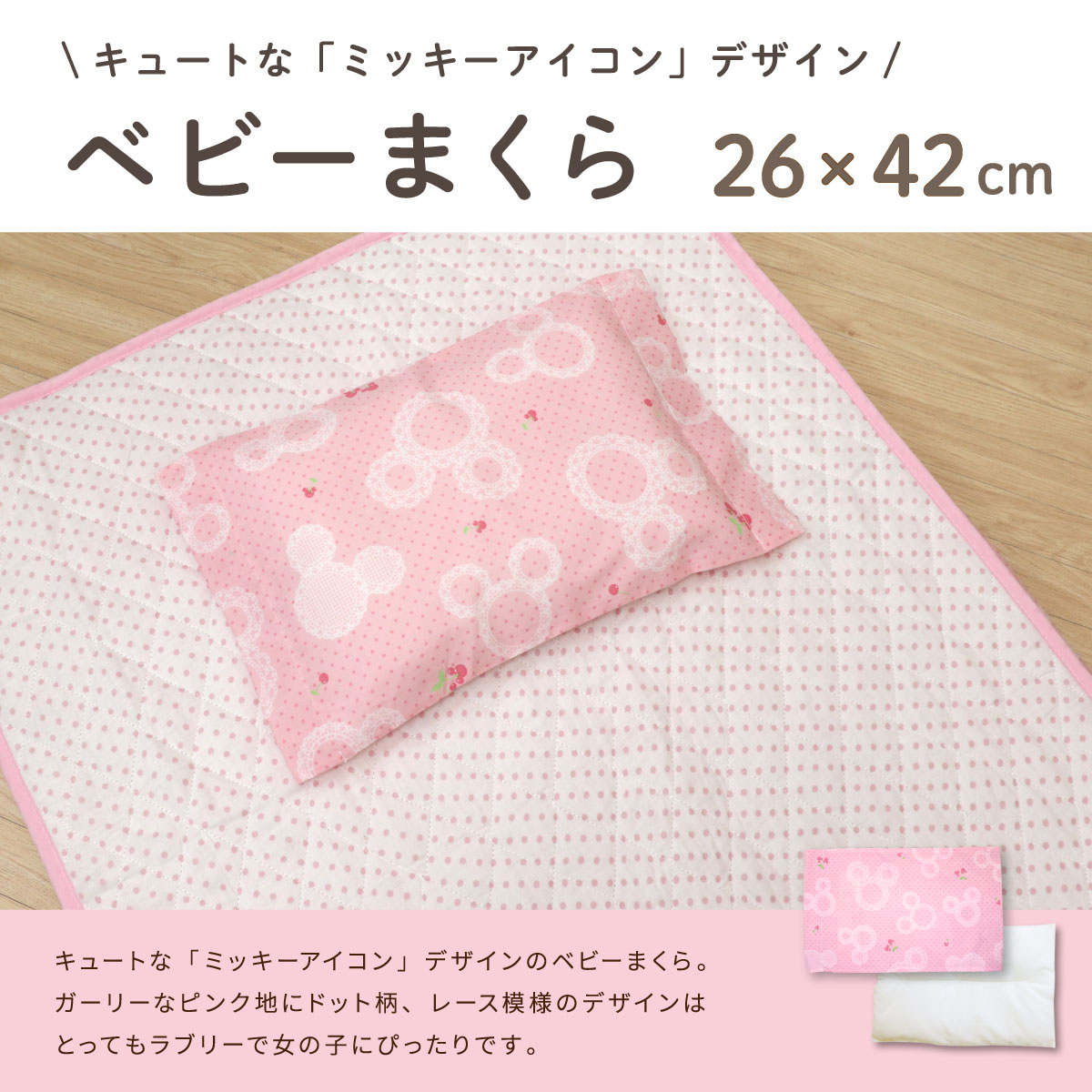 【クーポン発行中】ディズニー ベビー枕 26×42cm Disney ミッキーアイコン ミッキー ミニー ピンク レース ドット 水玉 女の子 ベビーまくら 枕カバー+枕中芯 まくらセット ベビー枕セット 枕カバー 洗い替え 新生児 赤ちゃん 出産準備 メール便発送(対面受取) LP |