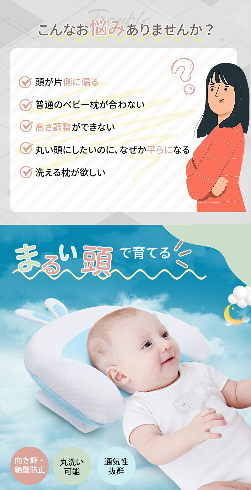 【安心保証】ベビー枕 赤ちゃん枕 新生児 まくら 安眠 絶壁防止 絶壁 吐き戻し防止 長頭症 矯正 向き癖防止 高さ調節 抗菌 防ダニ かわいい 汗取り おひるね ずり落ち防止 ムレない 洗える |