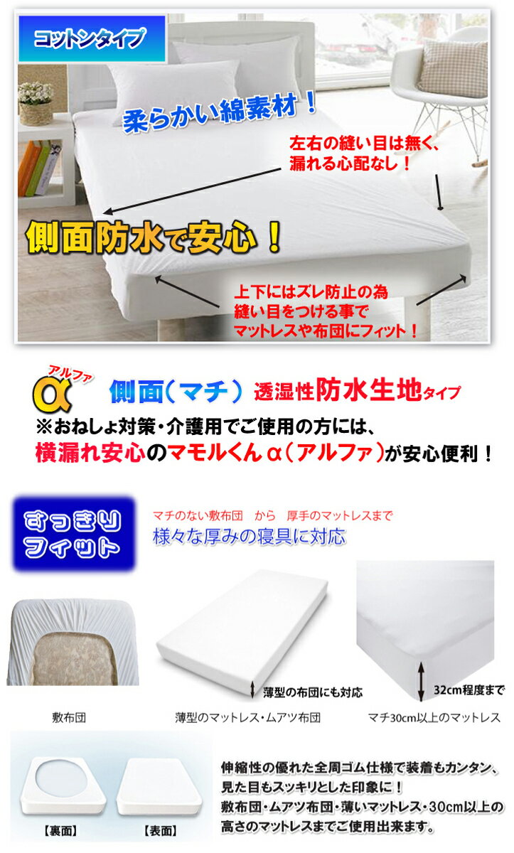 アレルギー対策【横漏れ安心&しっかり吸収】綿100ボックスシーツα ベッドシーツ ホテル仕様 肌に優しい 防ダニ 脱水 乾燥機可【透湿性防水素材 寝汗 ペット 防水シーツ おねしょシーツ 介護シーツ マットレスカバー boxシーツ ワンタッチシーツ ラバーシーツ |