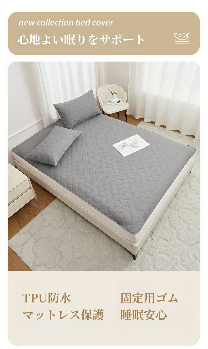 防水敷きパッド 防水シーツ おねしょシーツ さらふわ 中綿 洗える 4隅ゴム付き 着脱簡単 抗菌防ダニ オールシーズン ベッド/マットレス/敷き布団対応 介護用 ペット マットレスプロテクター ベッドパッド |
