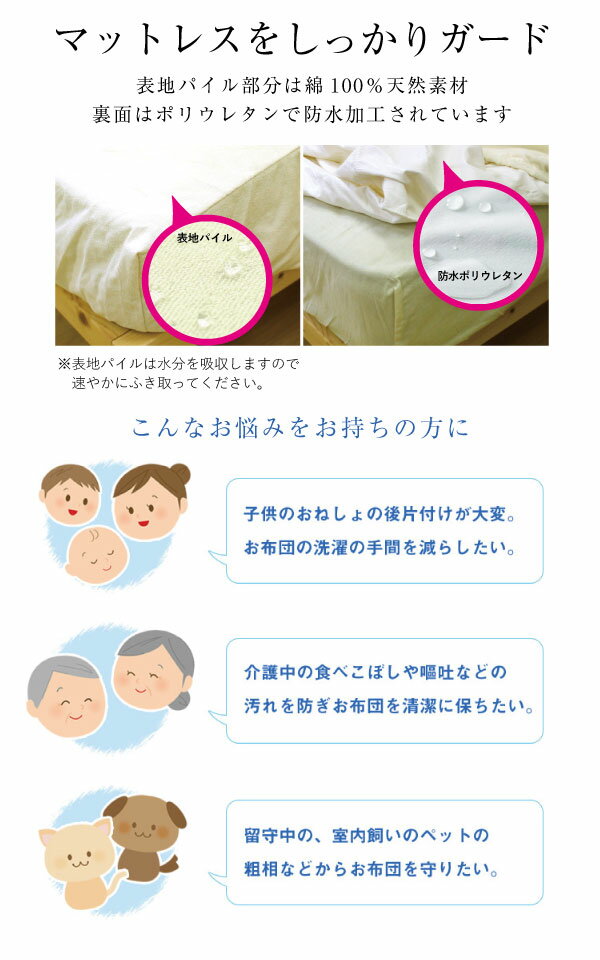 防水ボックスシーツ シングル 100×200×マチ30cm 綿パイル生地 介護シーツ おねしょシーツ 防水シーツ 防水ベッドシーツ 敷き布団用カバー マットレスカバー 子供用寝具(代引不可)【送料無料】 |