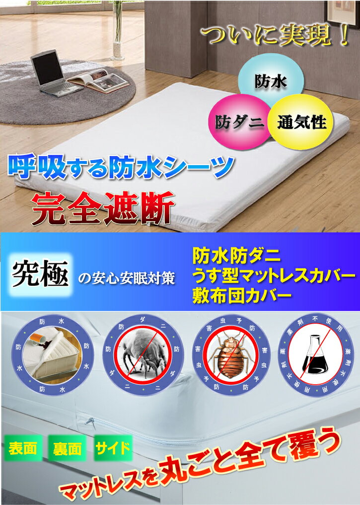 【アウトレット品】蒸れない 全面防水うす型マットレスカバー シングル 100x200x10cm あす楽【防水防ダニW効果】【ダニ通過率0%】【寝具汚れ防止】 寝汗 おねしょ アレルギー対策介護シーツ おねしょシーツ 洗濯機 脱水機 乾燥機 OK |
