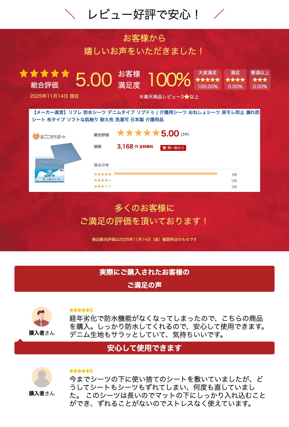 【メーカー直営】リフレ 防水シーツ デニムタイプ リブドゥ | 介護用シーツ おねしょシーツ 尿モレ防止 漏れ防止シート 布タイプ ソフトな肌触り 耐久性 洗濯可 日本製 介護用品 |