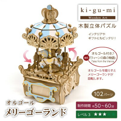 \全品エントリーでP10倍!/ ki−gu−mi オルゴール メリーゴーランド インテリア ギフト 脳トレ 木製 立体 パズル |