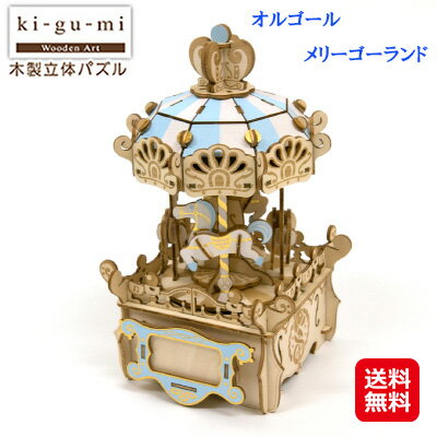 メリーゴーランド 模型 立体パズル 木製 木のおもちゃ パズル【ki-gu-mi オルゴール メリーゴーランド】【送料無料】【ポイント 2倍~10倍】作って、飾って、使える木製立体パズルシリーズ sl |