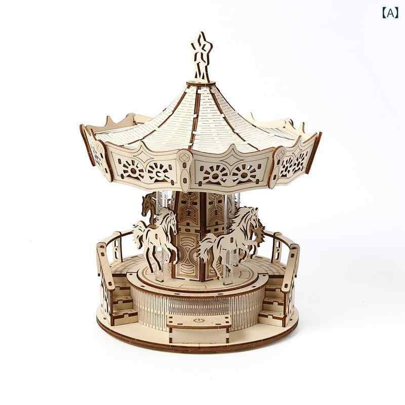 立体パズル 子供向け 木製 オルゴール メリーゴーランド 組み立て式 知育玩具 音楽再生機能付き 回転式 卓上 オブジェ インテリア ホビー ギフト |