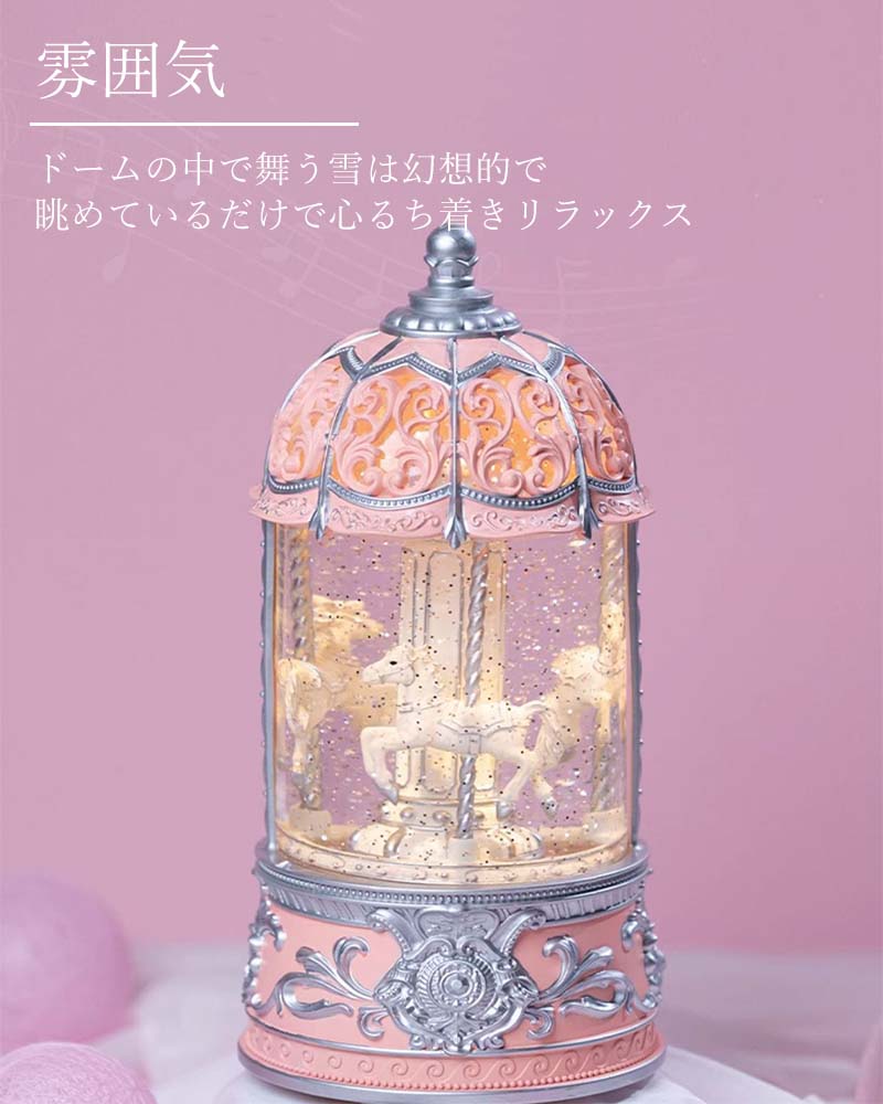 オルゴール メリーゴーラウンド カルーセル ピンク 高級 スノードーム 光る 自動回転 クリスマス おしゃれ 音楽 10曲入り 電池式 USB給電 回転木馬 スノーグローブ キラキラ ランタン LEDライト スノーボール 結婚祝い 誕生日 贈り物 男の子 女の子 置物 Xmas プレゼント |