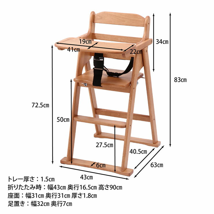 ベビーチェア チェア ダイニングチェア 折りたたみ 折りたたみチェア ハイタイプ ハイチェア グローアップチェア 子供椅子 子供用チェア イス いす 木製 北欧風 天然木 ラバーウッド材 キッズ 子供部屋 リビングチェア【送料無料】 |