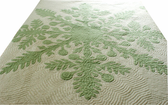 ハワイアンキルトベッドカバー 完成品 ハワイアンキルト 手縫い ベッドカバー マルチカバー ソファーカバー ハワイアン ハワイ【ブレッドフルーツ パンの木 グリーン】 180X260cm】 インテリア 寝室 リビング |