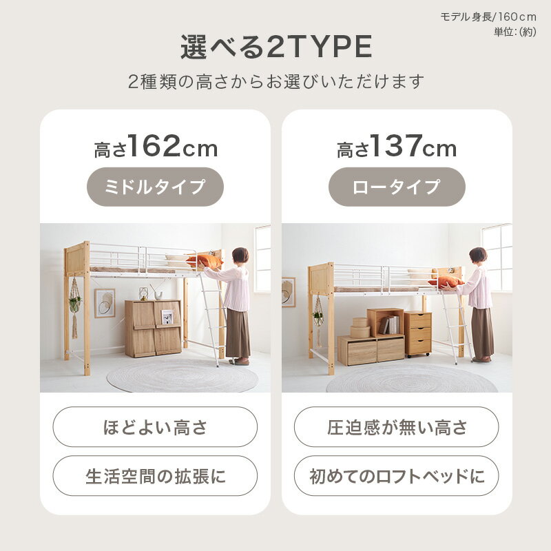 【レビューで特典あり】ロフトベッド ロータイプ ミドルタイプ 高さ137/162(ロフト ベッド パイプベッド シングル ミドル ハイタイプ 宮付き コンセント付き シングルベッド ロフトベット 大人用 大人 木製 子供 コンパクト おしゃれ ベッドフレーム ベット フレーム) |
