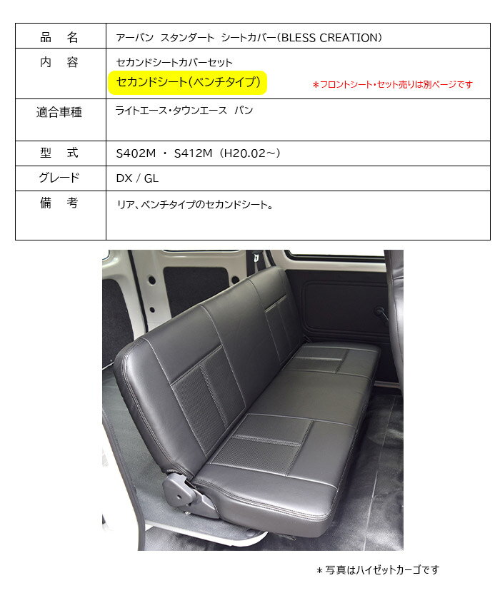 シートカバー タウンエース バン 【S402M S412M 2008年2月~】セカンドシート セット【ベンチタイプ】 快適 BLESS CREATION |