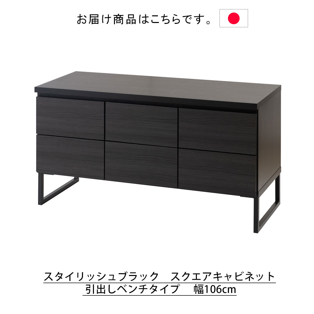 スタイリッシュ ブラック スクエア キャビネット 引出し ベンチタイプ 幅106cm 一人暮らし 新生活キャビネット ラック ブラック 収納 かっこいい おしゃれ 家具 小物収納 シンプル リビングチェスト 引出し 黒 スタイリッシュブラックシリーズ |