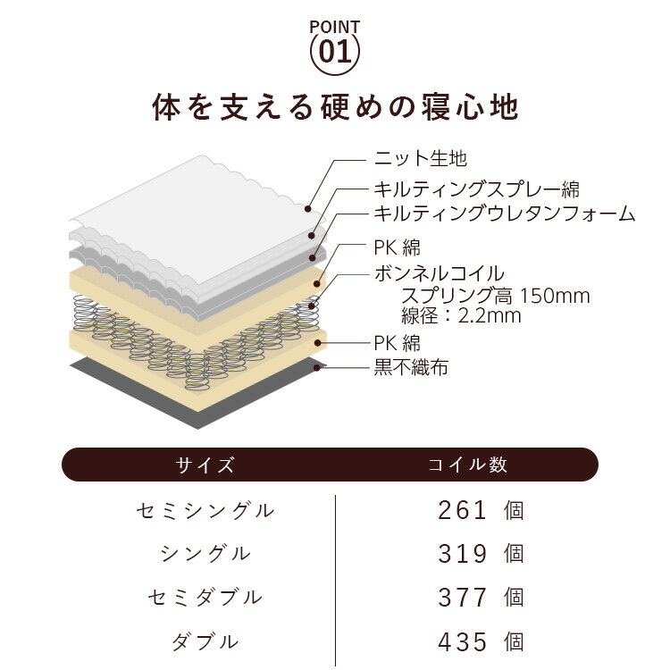 【3%OFFクーポン】 マットレス シングル ふつう ボンネルコイル 厚さ20cm やや硬め スプリングマットレス ベッド 抗菌 防臭 防ダニ ベッド用マットレス ベッドマットレス ボンネルマットレス 固め 新生活 店内人気No.1 日本製 開梱設置無料 |