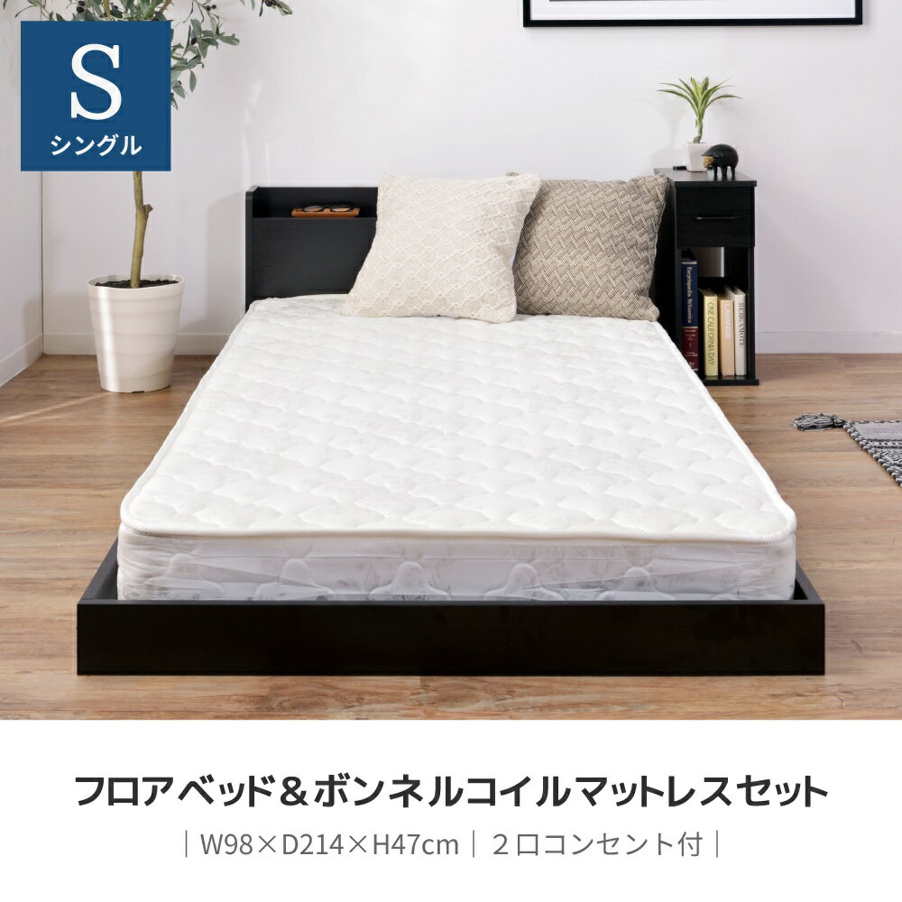 フロアベッド マットレスセット ベッドフレーム マットレス付き ベッド シングル ローベッド ロースタイル 低め すのこ 宮棚 2口コンセント 棚付き ブラウン ブラック ホワイト 一人暮らし ワンルーム 和室 ボンネルコイル |