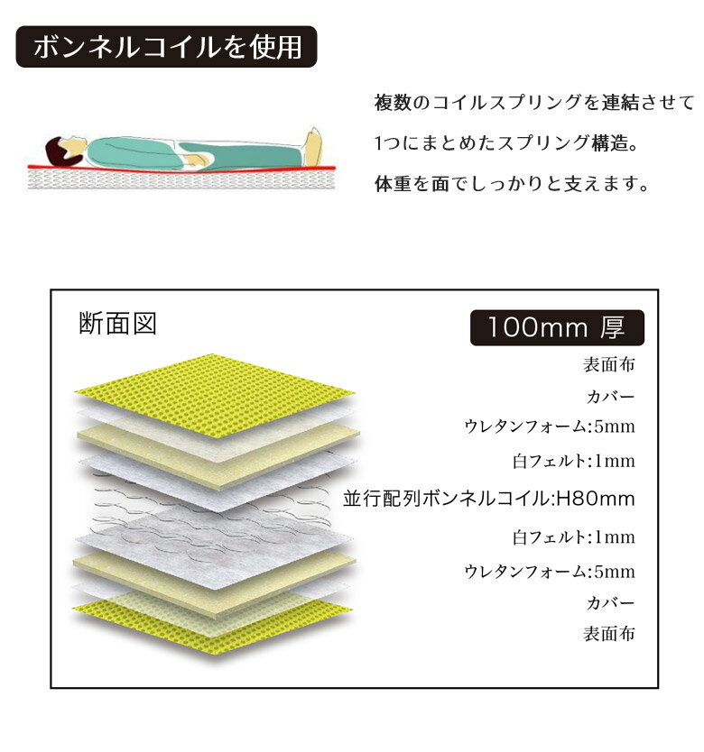 マットレス シングル セミダブル ダブル 抗菌 防ダニ 防臭 シングルマットレス ボンネルコイル ボンネル マット 圧縮梱包 楽な搬入 体圧分散 |