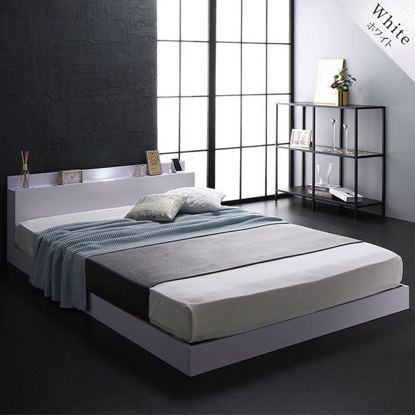 セミシングルベッド マットレス付き ボンネルコイル ローベッド ブラック LED照明コンセント宮棚付き |
