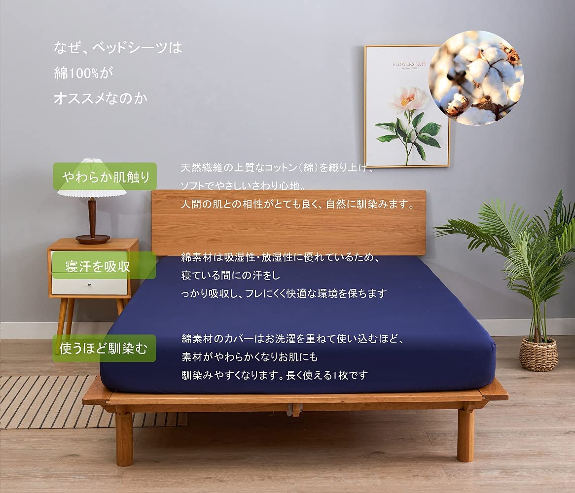 ボックスシーツ クイーン 綿100% ベッドシーツ 平織り マットレスカバー ベット用 防ダニ 抗菌 BOXシーツ ネイビー |