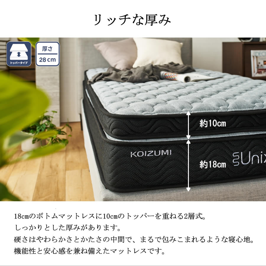 ポケットコイルマットレス 厚み28cm トッパー 硬め シングルサイズ 平行配列 マットレス 圧縮ロール 寝具 ポケットコイル 片面仕様 KOIZUMI 防ダニ 抗菌 【K-Style】 ポケットコイルマットレス004 トッパー付き シングル |