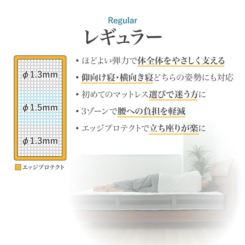 ポケットコイル 超高密度 硬さが選べる マットレス シングル セミダブル ダブル スモールシングル セミシングル 両面仕様 MI-P06 レギュラー ハード スーパーハード エッジサポート メッシュ 防菌 防臭 防ダニ 3ゾーン |