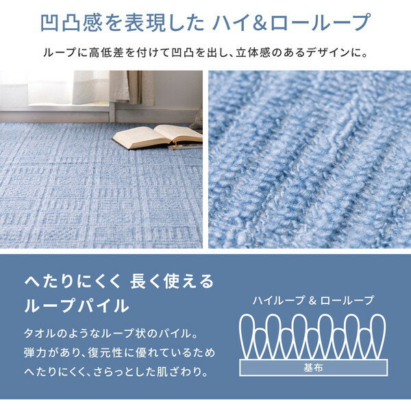 カーペット 4.5畳 シンプル ナチュラル 日本製 折り畳み 抗菌防臭 絨毯 じゅうたん ループ 国産 江戸間 4.5帖 四畳半 261×261cm 四角 ホットカーペット 床暖房対応 TOHO 【サージュ2/江戸間4.5畳】 |