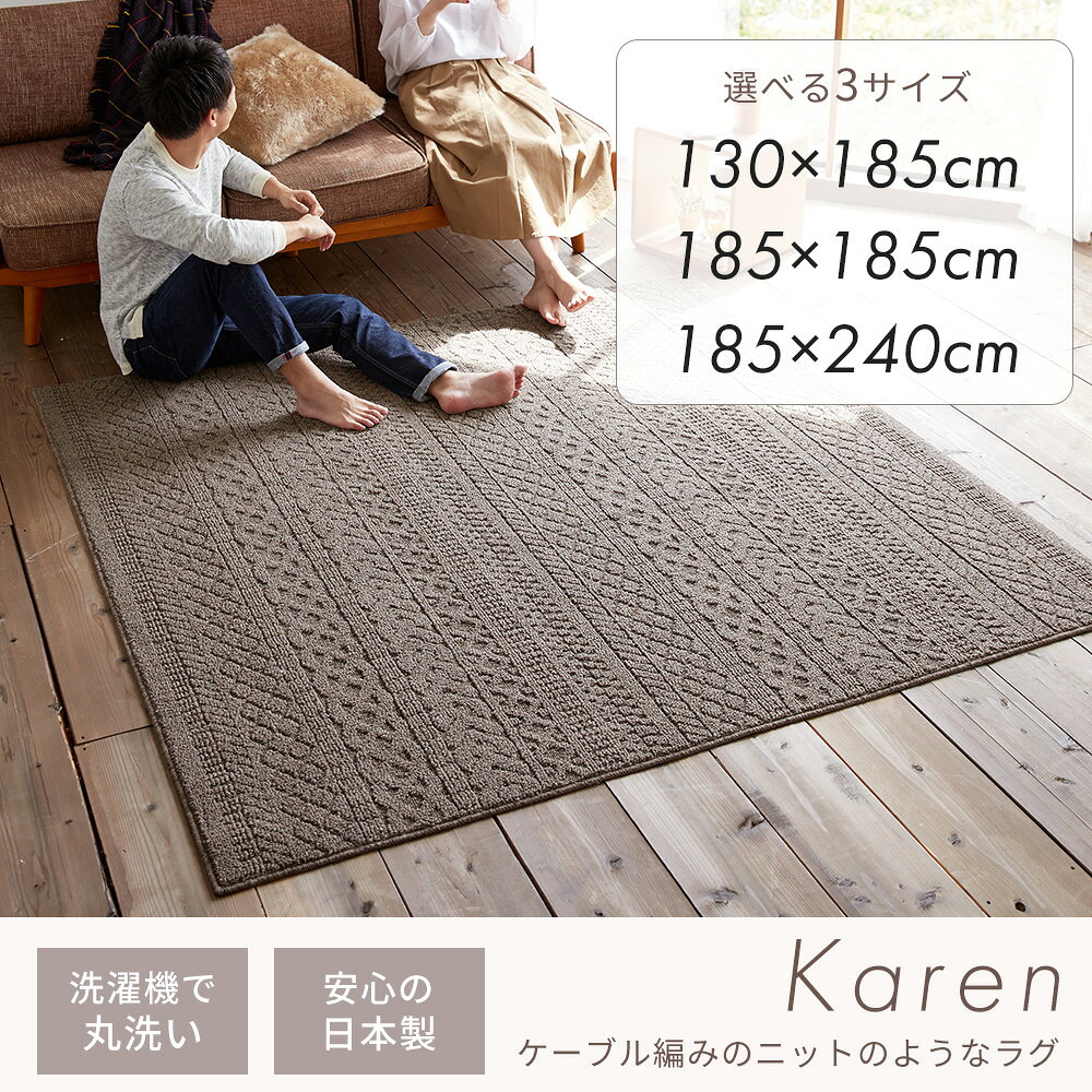 【当店限定特典付】ラグマット 洗える 北欧 ラグ カーペット 絨毯 おしゃれ 日本製 リブ編み ケーブル編み ニット セーター編み 正方形 長方形 人気 さらさら 床暖房 ホットカーペット対応 スミノエ 洗濯 こたつ 夏用 カレン |