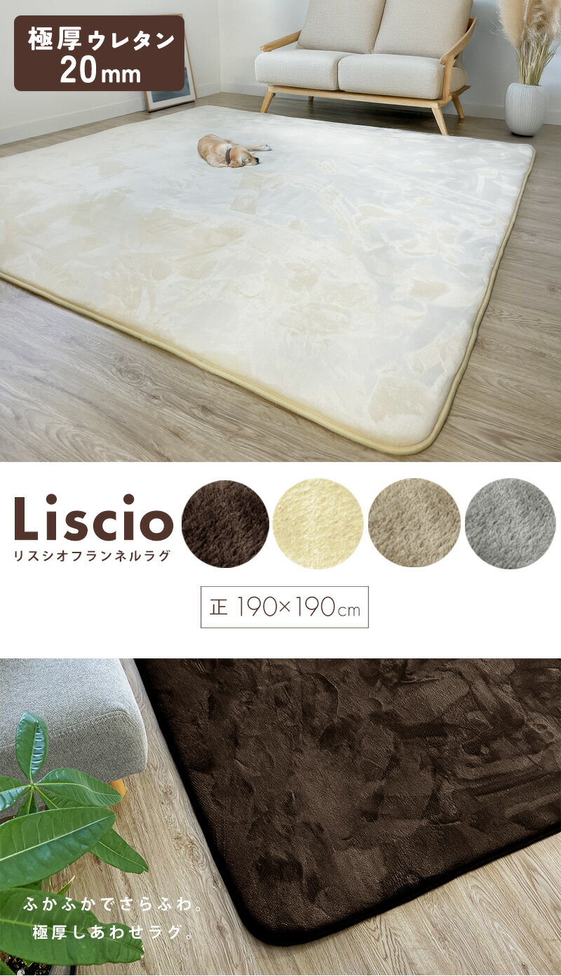 ラグ 20mm 2cm 極厚 厚手 liscio ラグ ラグマット 正方形 190×190cm さらさら 絨毯 じゅうたん 滑り止め カーペット 2畳 北欧 フランネル ノンホル 検査済み 床暖房対応 ホットカーペット対応 軽量 リビング 190 アイボリー ブラウン ベージュ |