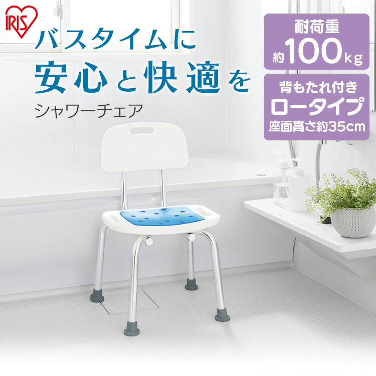 シャワーチェア 介護 背もたれ付 ロータイプ 座面 高さ約35cm 耐荷重約100kg 脚ゴム 取っ手付 軽量 滑りにくい 介護椅子 お風呂 椅子 介護用 入浴補助 バスチェア シャワーチェアー イス アイリスオーヤマ SCT-350 * [2602SX] |