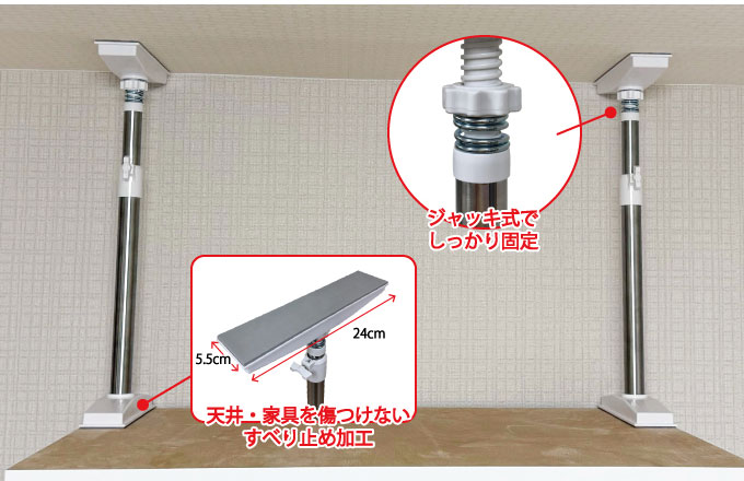 突っ張り棒 伸縮棒 ジャッキ式 家具転倒防止 窓の安全バー 穴あけ不要 調節簡単 省スペース 防災措置 地震対策 冷蔵庫 本棚 食器棚 天井用 家具固定用 タンス テーブル 棚 |