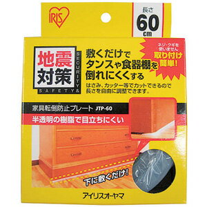 家具転倒防止グッズ 家具転倒防止プレート 120cm 1枚入 棚 食器棚 本棚 タンス 家具 転倒防止 敷くだけ 簡単取付 防災 災害 地震対策 賃貸 半透明 目立ちにくい 長さ自由調整可 転倒防止マット アイリスオーヤマ JTP-120 * |