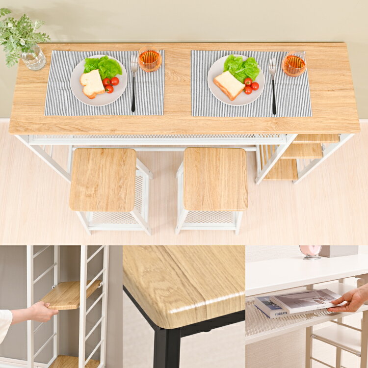 カウンターテーブル スツール 2脚セット 収納付き 高さ87cm おしゃれ ハイテーブル バーカウンター カウンターデスク ハイスツール 3点セット カフェ チェア 椅子 省スペース 作業台 木製 幅120cm |