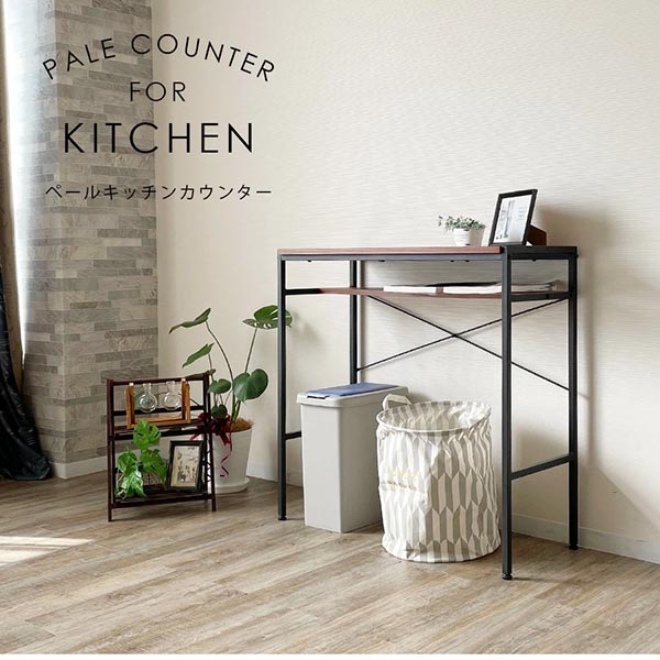 キッチンカウンター 幅93.5cm 高さ90.5cm スチール製 ブラウン ナチュラル アジャスター付き ハイカウンター カウンターテーブル ハイテーブル デスク パソコンデスク リビング収納 キッチン収納 キッチンカウンター 北欧 シンプル 人気 ダストボックス対応 QSM-180 GMK |