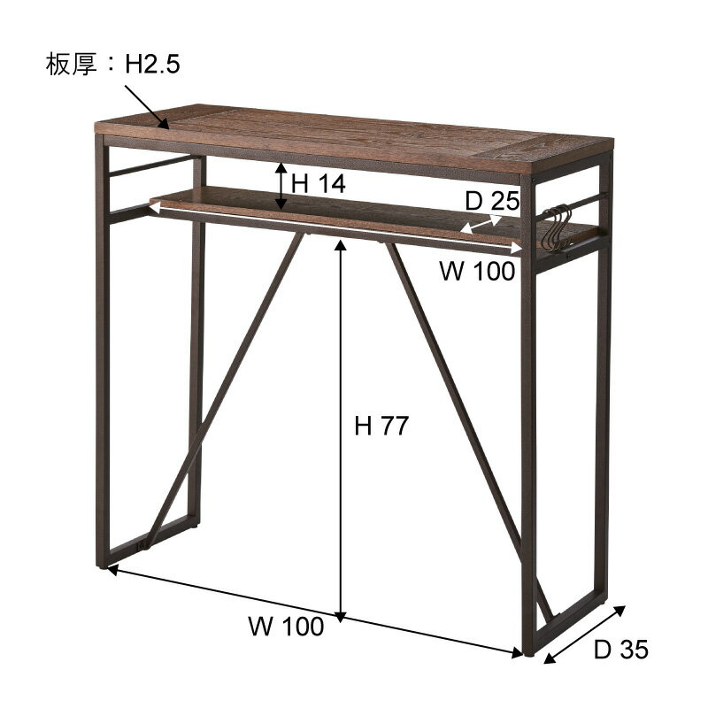 棚付きカウンターテーブル 幅105cm 高さ100cm フック付き スチール ハイテーブル カフェテーブル バーカウンター テーブル 作業台 つくえ 机 レトロ モダン 北欧 ブルックリン 西海岸 男前 インテリア おしゃれ アンティーク |