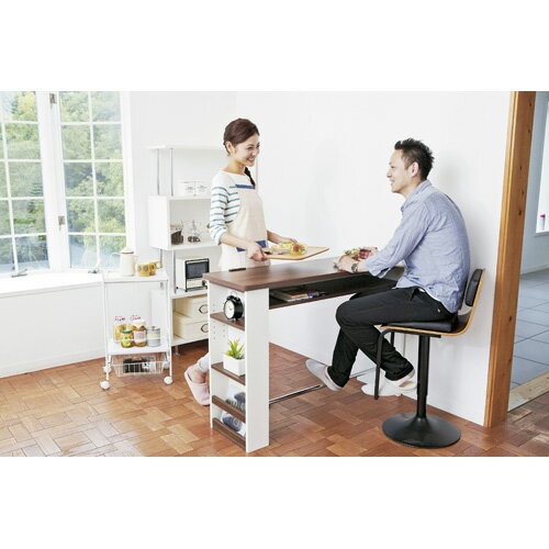 KNT-1200 BK WH カウンターテーブル 120cm幅 ハイテーブル ブラック ホワイト 省スペース 壁面使い 対面カウンター コンセント付き 収納棚付き シンプル ミヤタケ 宮武製作所 【送料無料】 |