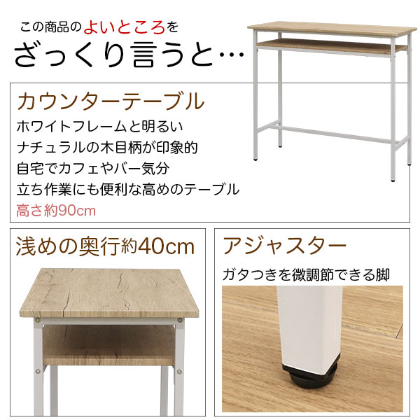 カウンター デスク 白 木製 ハイデスク バーテーブル ハイテーブル 40cm ハイカウンター ハイカウンターテーブル 高さ90cm カウンターテーブル ホワイト キッチンカウンター 間仕切り テーブル ダイニング 140cm幅 一人暮らし 【幅140 奥行40cm 高さ90 Hammer ST 木目】 ● |