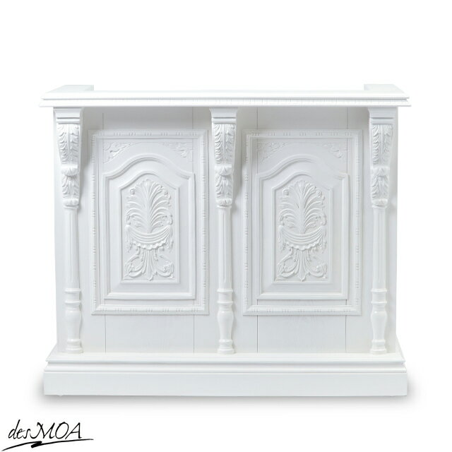 バロック アンティーク調 カウンター 1.2M幅 レジカウンター カウンターテーブル 受付台 レジ台 作業台 木製 引出し付き 収納 彫刻 レリーフ ヨーロッパ調 クラシック 重厚感 高級感 華やか 輸入家具 美容室 サロン ホテル 飲食店 服飾店 店舗 白 ホワイト 5054-1.2MC-18 |