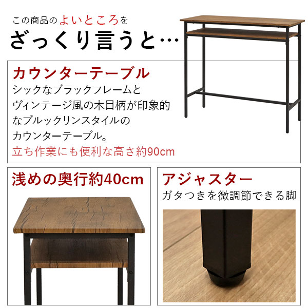 カウンターテーブル 立ち テーブル 90高 100幅 立ちテーブル 立ちデスク 幅100cm 奥行40cm 高さ90cm スタンディングデスク スタンディングテーブル コーヒーテーブル カフェテーブル 立ち 作業 机 ヴィンテージ風 シンプル おしゃれ かわいい ブラック 黒 アイアンフレーム |