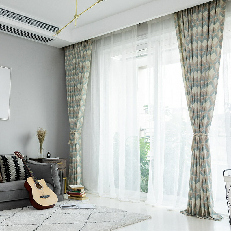 [1cm刻みのオーダー][無料で追加する完全遮光裏地]カーテン 北欧 1級遮光裏地 ダイヤモンド格子 イエロー 青 ブルー 2枚組 1枚組 生地 遮光 遮熱 防音 カーテン かわいい おしゃれ 非遮光 腰高窓 出窓カーテン 送料無料 |