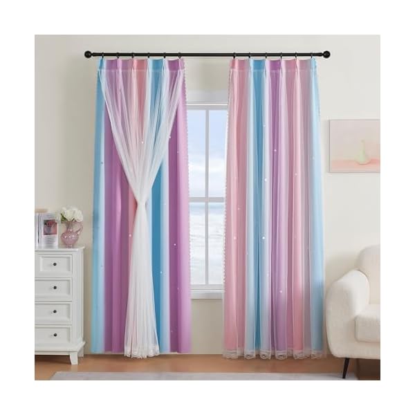 姫系 可愛い 星柄 おしゃれ カーテン 遮光 断熱 防音カーテン 子供部屋 女の子 寝室 リビング 窓用 洗濯可能 (ピンクブルーパープル, 幅100cmx丈160cm/2枚) |